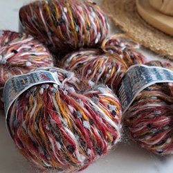 Jag stickade en sjal i detta och ett nystan räckte. Färgen är 42611. Se bilder för kvalitet.