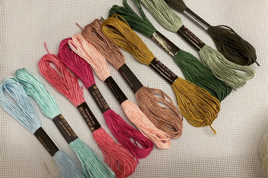 10 dockor broderigarn + Aidaväv 30 x 30 cm
