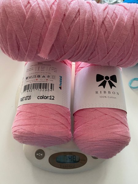 Tre nystan rosa Ribbongarn (bomull) från Hobbii färg 12