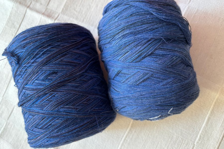 Blått stränggarn. Det ena är ministränggarn och det andra är vanligt stränggarn. Vikt 810 gram.