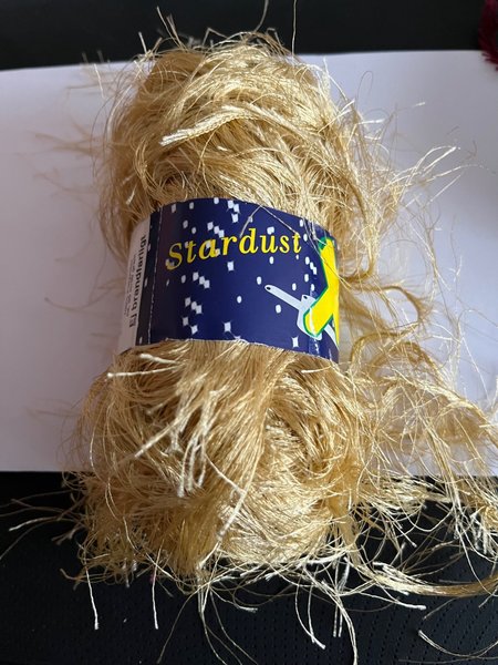 Stardust långhårig 50gram =75 meter , stickor nr 5,5 . Säljes i 5 pack =250 gram 100%polyester