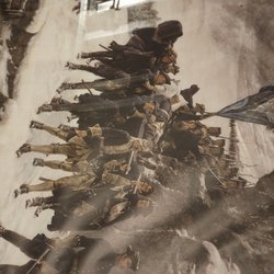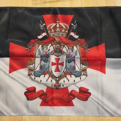 Öljett-fäste för flaggstång. Längd ca 140cm, höjd ca 90cm. Ensidigt motiv.