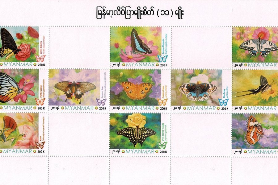 MYANMAR 2025 ENDEMISKA FJÄRILAR I MYANMAR STORT MINIARK **