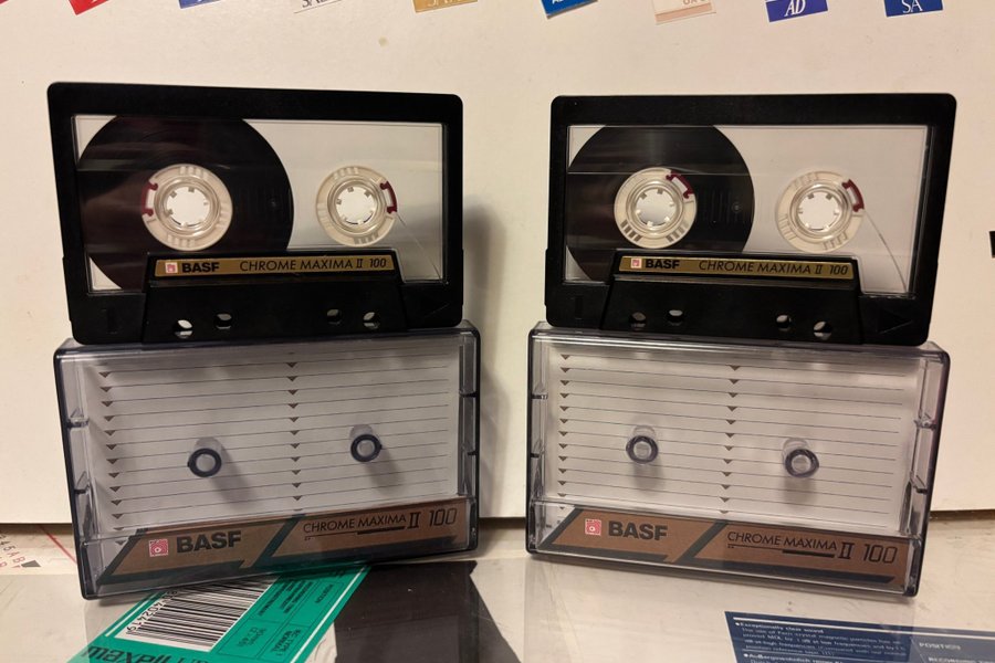 Två BASF Chrome Maxima II 100 kassetband. Perfekt för inspelning eller samling.
