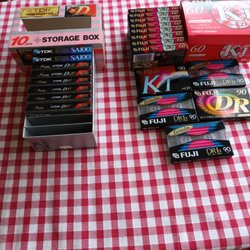 Parti med blandade kassettband innehållande musik från olika artister och genrer. Perfekt för samlaren eller den nostalgiske lyssnaren.