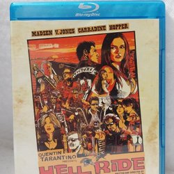 Blu-ray utgåva av filmen Hell Ride. Regisserad av Larry Bishop och presenterad av Quentin Tarantino. Medverkande: Michael Madsen, Dennis Hopper, David Carradine m.fl.