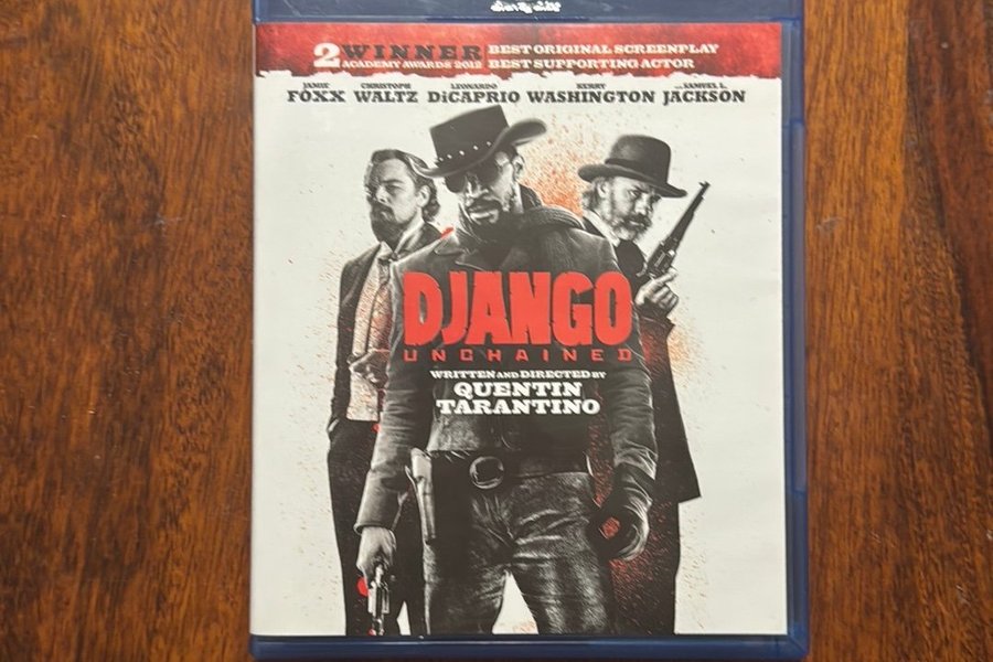 Blu-ray utgåva av Quentin Tarantinos "Django Unchained" med Jamie Foxx, Christoph Waltz, Leonardo DiCaprio, Kerry Washington och Samuel L. Jackson.