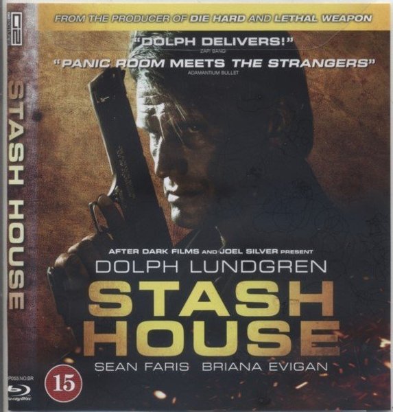 Blu-ray-utgåva av actionfilmen Stash House med Dolph Lundgren. Perfekt för actionfilmsälskaren! text: svenska norska danska finska
