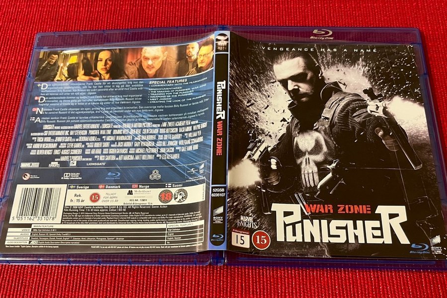 Blu-ray utgåva av Punisher: War Zone. Actionfilm om Frank Castles skoningslösa krig mot organiserad brottslighet och hans hämnd mot maffiabossen Billy Russoti, som antar identiteten Jigsaw. Innehåller extramaterial som kommentarer från filmskaparna och minidokumentärer.