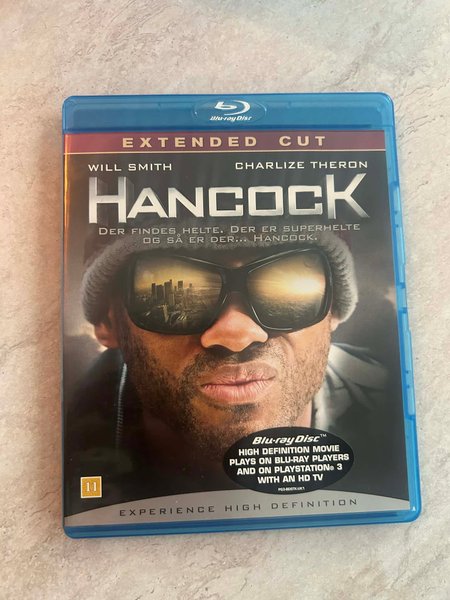 Hancock Extended Cut på Blu-ray med Will Smith och Charlize Theron. Filmen är en högupplöst version som kan spelas på Blu-ray-spelare och Playstation 3 med en HD-TV.