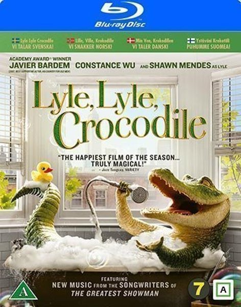 Blu-ray-utgåva av filmen Lyle, Lyle, Crocodile med Javier Bardem och Constance Wu.