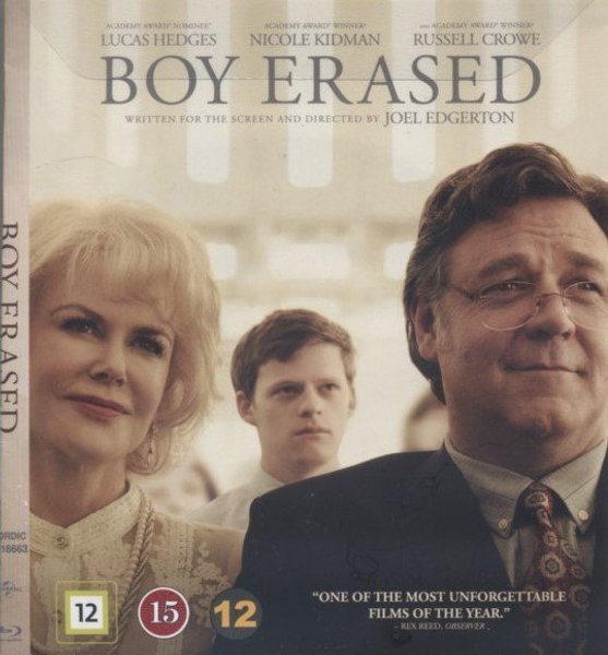 Blu-ray utgåva av filmen Boy Erased med Lucas Hedges, Nicole Kidman och Russell Crowe. Ett gripande drama regisserat av Joel Edgerton. TEXT: SVENSKA NORSKA DANSKA FINSKA