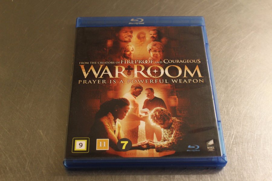 Blu-ray-film "War Room" från skaparna av "Fireproof" och "Courageous". Filmen har texten "Prayer is a powerful weapon" på omslaget. Åldersgränserna 9, 11 och 7 visas på framsidan.