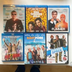 Säljer ett paket med tre Blu-ray filmer: We're the Millers (Extended Cut), Identity Thief och Forgetting Sarah Marshall. Perfekt för en filmkväll med komedi!