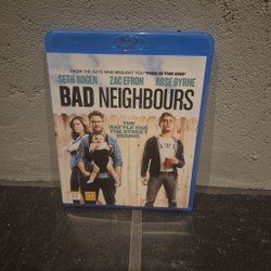 Blu-ray utgåva av Bad Neighbours med Seth Rogen, Zac Efron och Rose Byrne. Filmen har svensk text och skivan är i mycket fint skick.