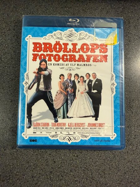 Blu-ray utgåva av Bröllopsfotografen. En komedi av Ulf Malmros med Björn Starrin, Tuva Novotny och Kjell Bergqvist.
