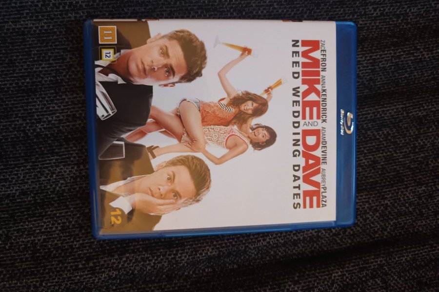 Blu-ray-film med titeln "Mike and Dave Need Wedding Dates". Skådespelare inkluderar Zac Efron, Anna Kendrick, Adam DeVine och Aubrey Plaza. Filmen har en åldersgräns på 12 år.