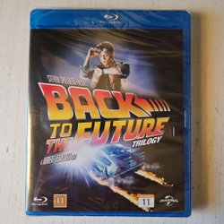 Blu-ray utgåva av Back to the Future trilogin. Innehåller alla tre filmerna: Back to the Future, Back to the Future Part II och Back to the Future Part III.