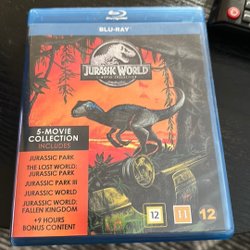 Blu-ray-film av "Jurassic World". Filmen har en speltid på 124 minuter och är textad på svenska, norska, danska och finska. Ljudspår finns på engelska, tyska och turkiska. Åldersgränsen är 12 år enligt den svenska märkningen och 11 år enligt den finska märkningen.