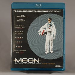 Blu-ray-utgåva av filmen Moon. Filmen är från 2009 och har Sam Rockwell och Kevin Spacey i rollerna. Textning finns på svenska, danska, norska och finska.