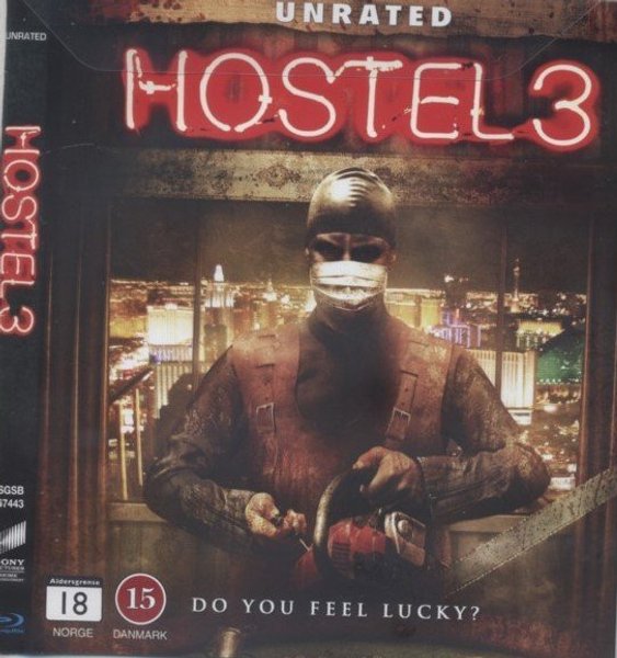 Blu-ray utgåva av Hostel 3. Åldersgräns 18 i Norge och 15 i Danmark. Unrated version. text: svenska norska danska finska