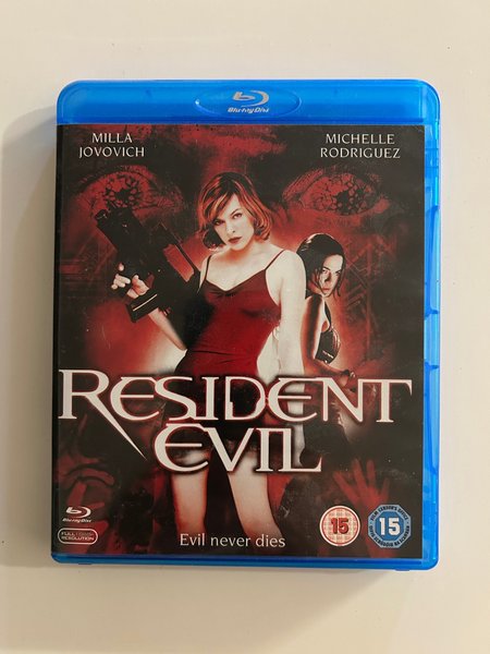 Blu-ray-utgåva av filmen Resident Evil med Milla Jovovich och Michelle Rodriguez i huvudrollerna. Filmen har full 1080p upplösning.