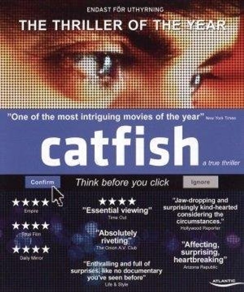 Två filmare får vittring på en story när den enes bror Nev blir kontaktad av en mystisk konstnärsfamilj på Facebook. Oskyldigt chattande förvandlas till intensiv nätromantik när Nev och familjens äldsta dotter faller för varandra. Det är här historien tar en helt ny vändning och dokumentären förvandlas till en reality-thriller ingen hade kunnat förutse. "Catfish" är en unik, rolig och andlöst spännande film som speglar den moderna online-världens mörka baksida.