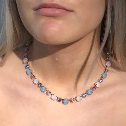 Till mina smycken använder jag kristaller från Preciosa, Aurora och Swarowski, samt sötvattenspärlor. Jag kommer även att arbeta med cernitlera. Med inspiration från de mängder av egenodlade blommor jag sålde på Bondens egen marknad under många år.