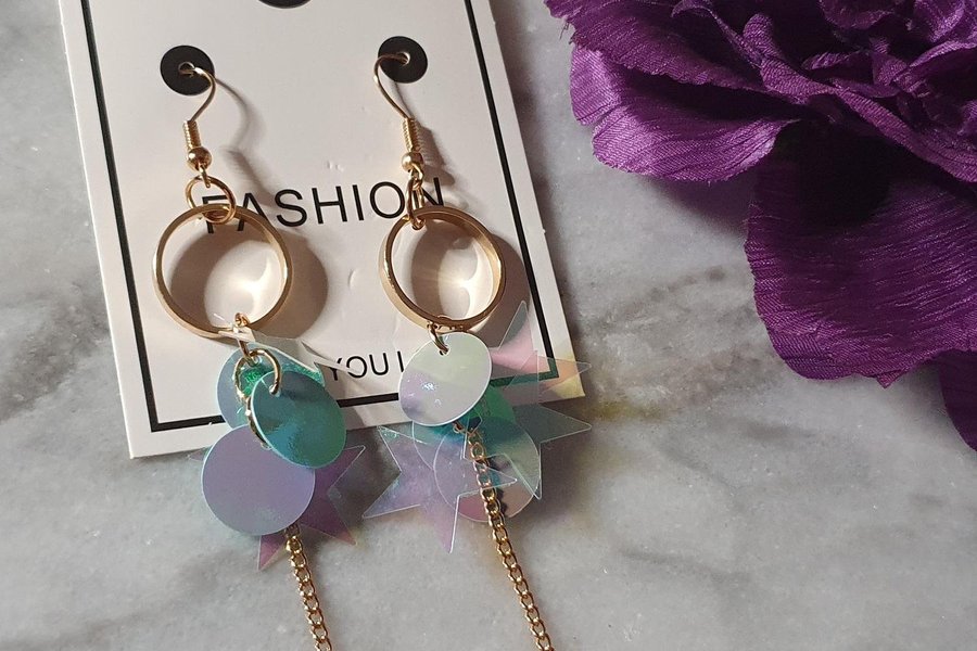 Örhängen som är omgjorda av delar från andra smycken, defekter kan förekomma.
