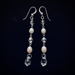 Ett par eleganta pärlörhängen med silverfärgade detaljer. Perfekt för både vardag och fest.