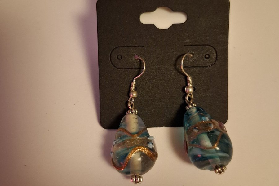 Ett par vackra, tunga glasörhängen med unikt mönster. Perfekt för att komplettera din stil.