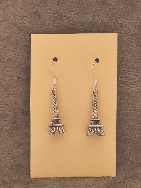 Ett par örhängen med Eiffeltorn. Öronkrokarna är Sterling silver 925. Funderingar över nåt så hör av dig. Djur finns I hemmet.
