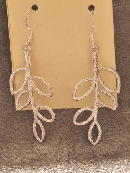 Örhängen med silverfärgade löv.