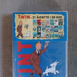 Komplett DVD-box med alla 21 Tintin-äventyr. Innehåller 7 skivor med ljud på Danska, Suomi, Norska och Svenska.