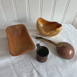 Även en trådask i papier-maché. Sådan burk hade kvinnor förr att förvara sina virkgarnsnystan i.