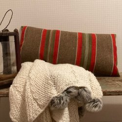 Ljuvligt vacker agedyna monogram tofsar ulltyg / bolster / vadmal. Allmoge!