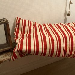 Otroligt vacker antik agedyna med monogram och tofsar , ulltyg / vadmal. Fylld.
