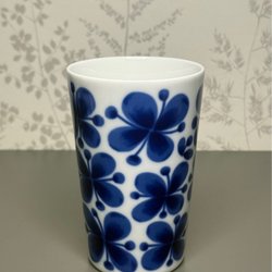 Mugg från Rörstrand i serien Mon Amie, designad av Marianne Westman. Muggen har ett mönster av blå blommor på vit bakgrund.