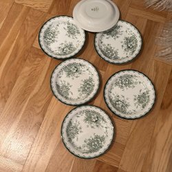 5 stycken Fina tallrikar från Gustavsberg Rörstrand Gröna Anna 24 centimeter i diameter