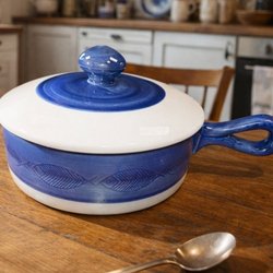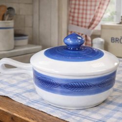 Rörstrand Koka blå karott med lock, design Hertha Bengtsson. Mycket fint skick. Endast en ”strimma” i botten på insidan.