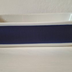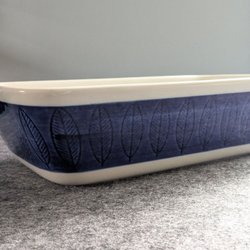 Rätt ovanlig Ugnsform från Rörstrand, modell Koka. Formen är vit med ett blått mönster av blad runt om. Den är ugnssäker.