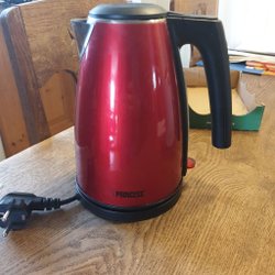 En tekanna från Rörstrand, serien Fjord. En flis ur där locket sitter men syns inte . Lite missvisande det är blå dekor.höjd 15 cm och 15 cm I diameter nedtill.