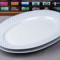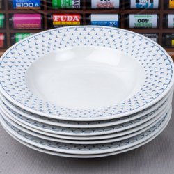 1 tallrik har ett märke under tallriken.