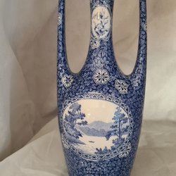 En söt liten vas från Rörstrand med blått blommönster och motiv.