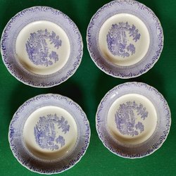 En tallrik från Rörstrand, lila spets. Tallriken har en ingravering på baksidan