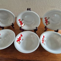 Sex stycken djupa tallrikar från serien Tomtejul, design Aina Stenberg.