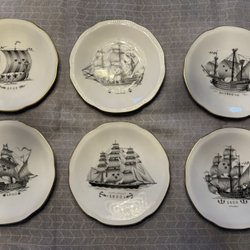 En tallrik från Kungsholmsservisen med en bild av ett skepp och årtalet 1700.
