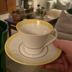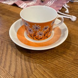En kopp med fat från Rörstrand. Koppen har en spricka.