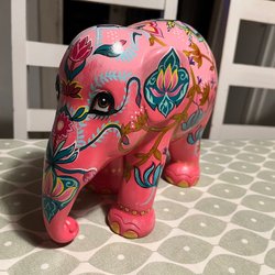 Designen är ett exempel på brukets produktion av prydnadsföremål i lergods som var populära under 1950-talet. Ca 7 cm hög och rymmer ca 4 dl.