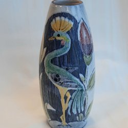 Vas från Upsala Ekeby. Troligtvis från 30-talet. H 11,5 cm D 15,5 cm.